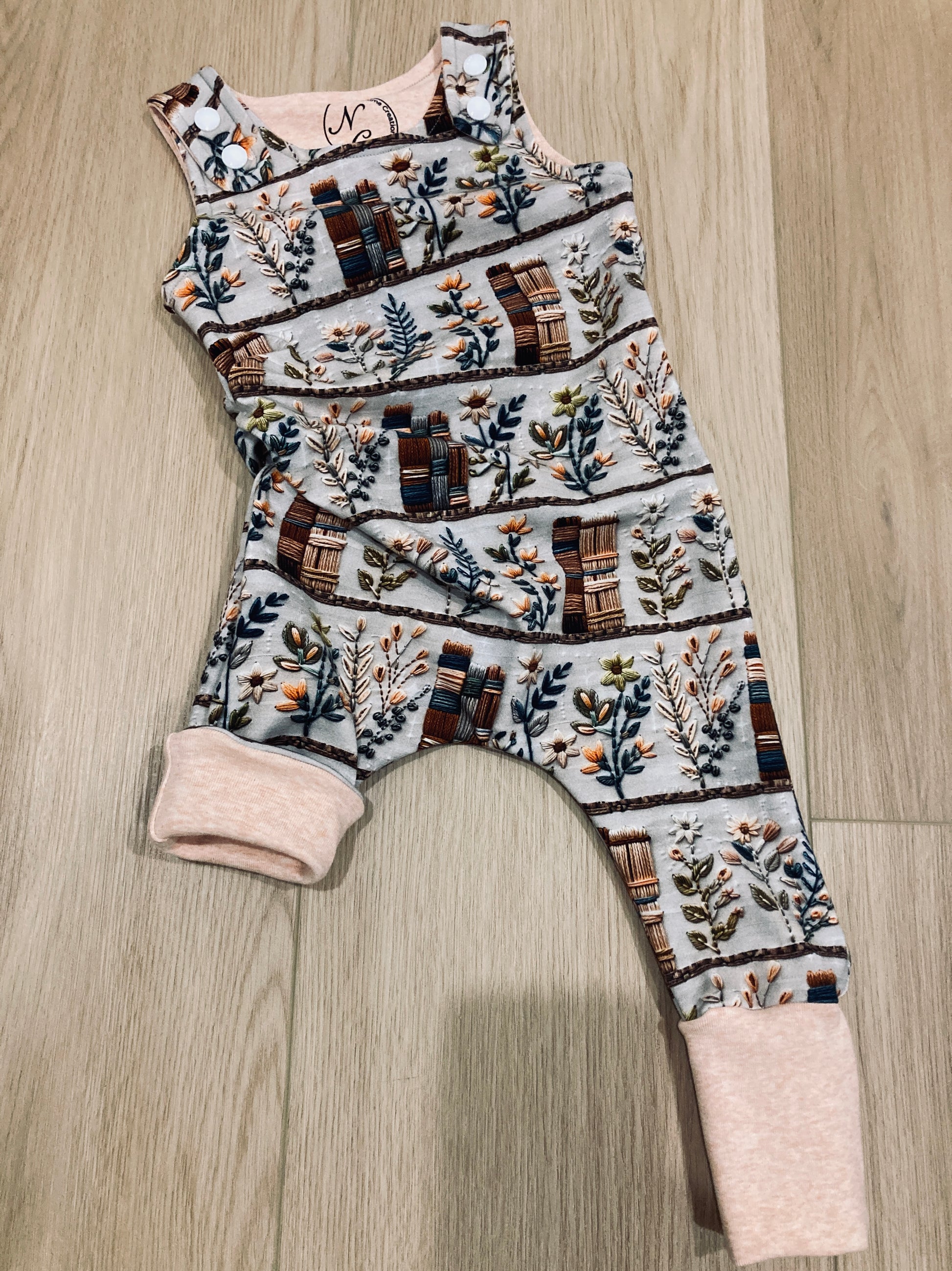 Our most popular item. Cotton jersey print with liner and cuffs in a peach coloured cotton rib knit. It adjusts with a hidden drawstring on the sides of the torso and features grow with me cuffs and adjustable shoulder snaps to give you a piece of clothing that lasts far longer than something purchased in store.