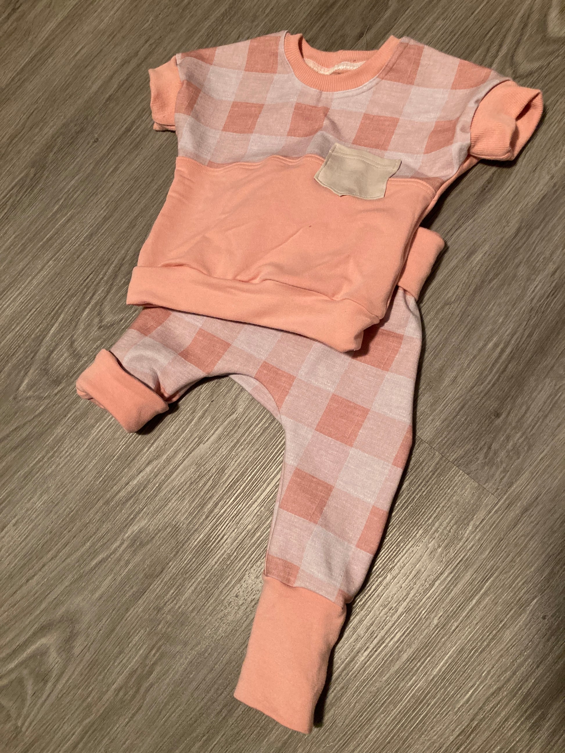 Pink Plaid Grow with me dolman t-shirt and pants set
